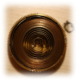 Bauteil zur Aufnahme der Antriebsfeder. In einer Trommel mit Verzahnung wird die Zugfeder untergebracht. Über die Federwelle mit dem Federkern wird die Zugfeder in der Trommel gespannt. Die Verzahnung der Trommel greift direkt in das Räderwerk der Uhr und treibt dieses somit an.